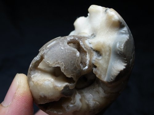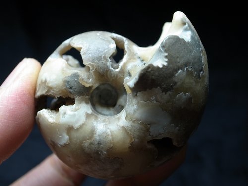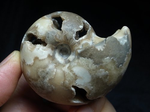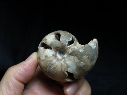 這顆完全方解石化菊石 ~ 部分自然鏤空的氣室