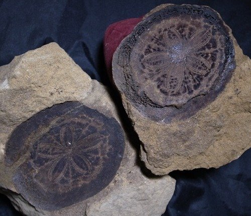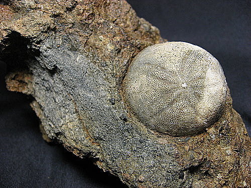大桶山層的黑石膽 海膽 (左邊標本 白色為石英侵入 )
