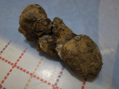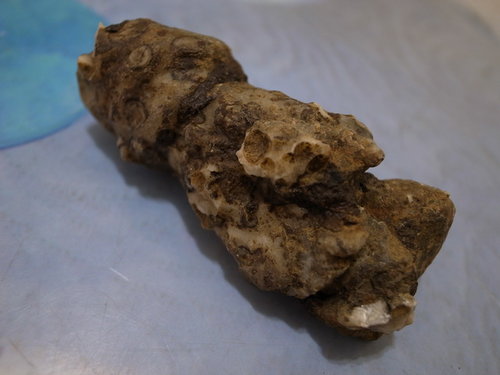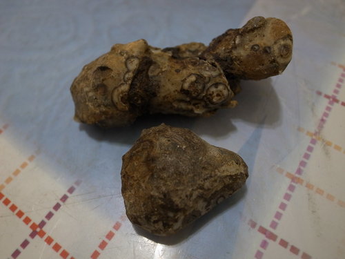 第一類 : 純由霰石或方解石組成的文石 ~ 白色 ( 如果有含少量鐵質易呈淺雜米色 ), 無漂亮色紋、硬度比較低,這樣的文石適合原礦欣賞,其結實的單體俗稱 " 菜頭 " 啦。
