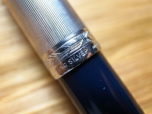純銀筆蓋,鍍金的筆夾有藍鑽石標誌