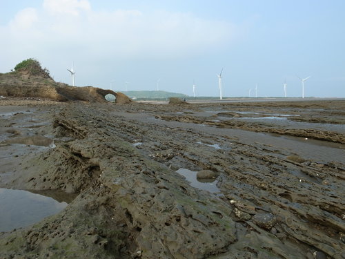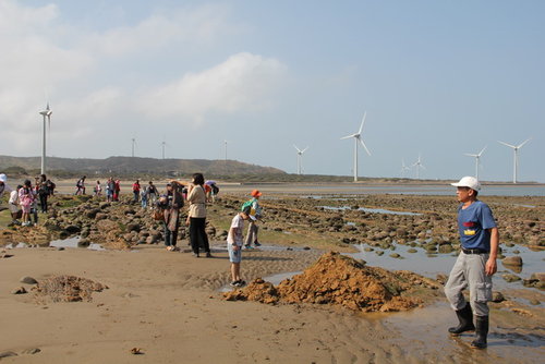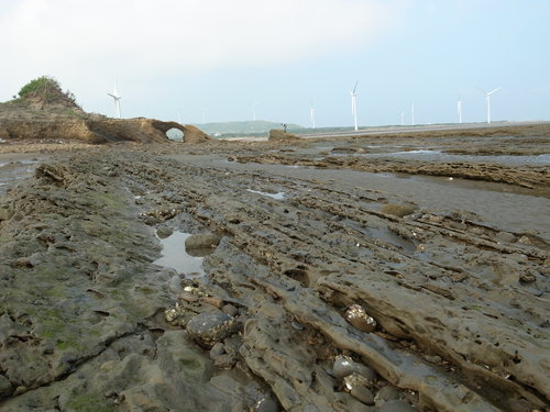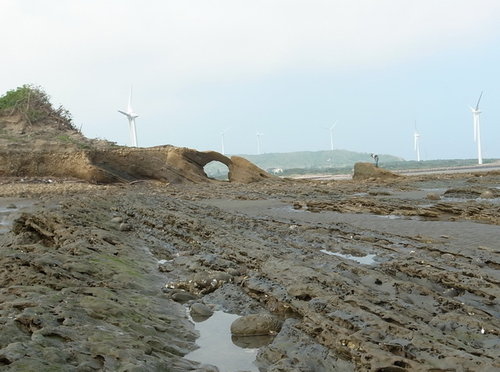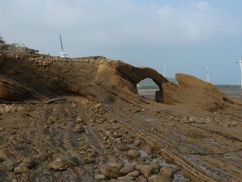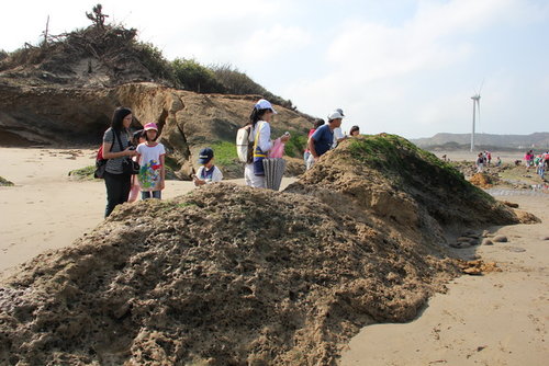 去年帶小朋友來這裡校外體驗... 著名的海蝕洞尚未穿孔 ( 沙有退一半了 )
