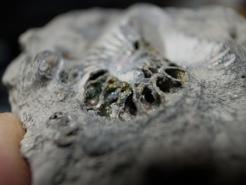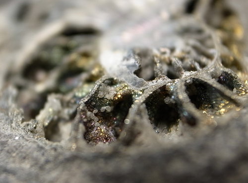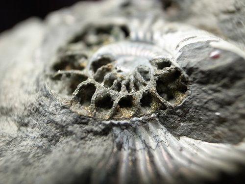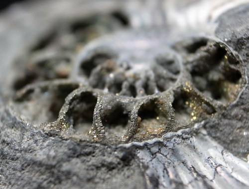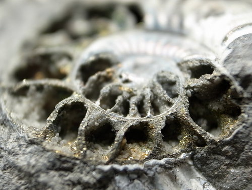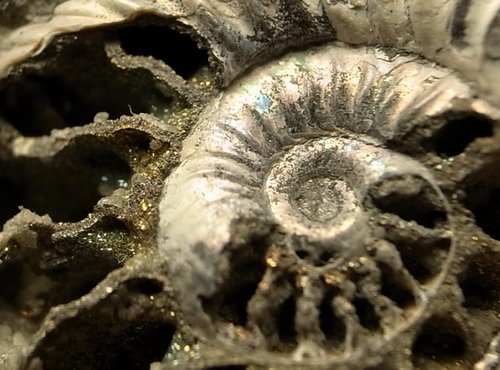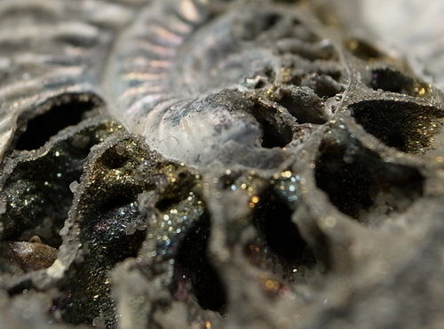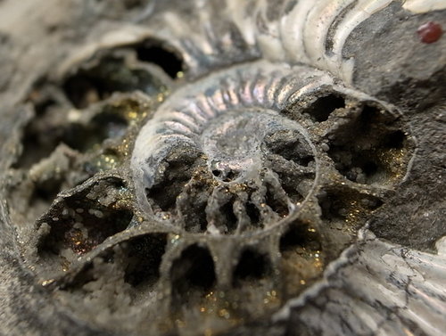 但其住室保有明亮的珍珠層,以及氣室表現出七彩黃鐵礦化的奇妙小世界