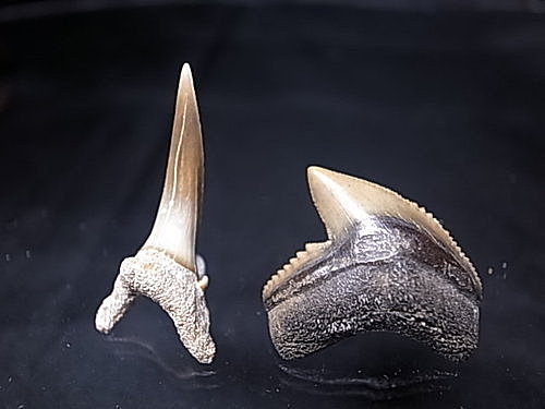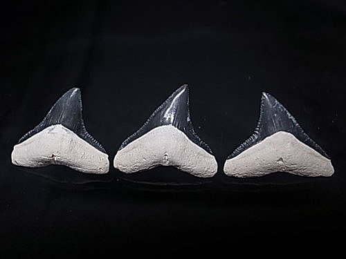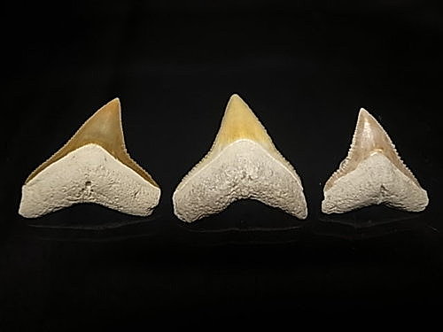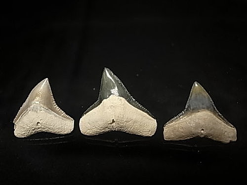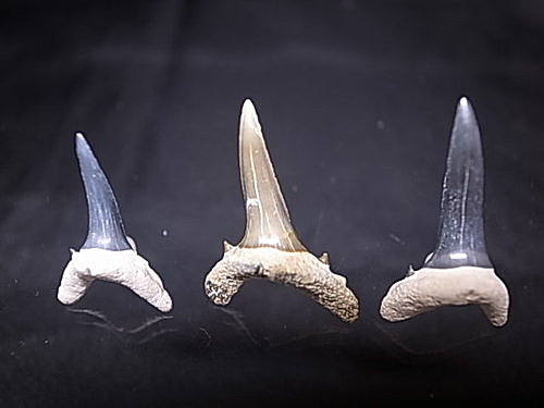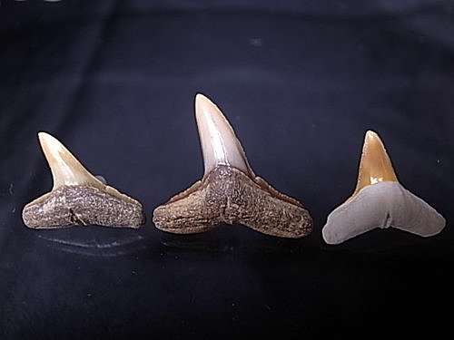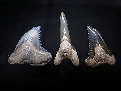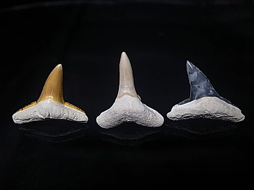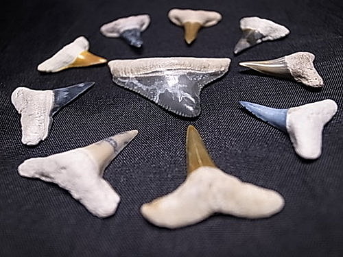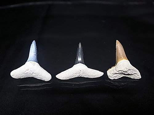 請大家欣賞這些顏色多變的骨谷鯊魚牙,牙根多半是白色系列…