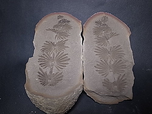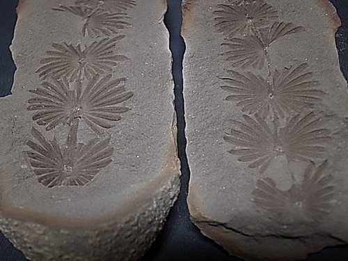 來自美國伊利諾州 石碳紀地層 ( 約三億年前 ) 的結核性輪葉羊齒化石 ~ 稀有的七片 輪葉羊齒