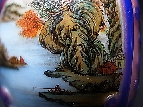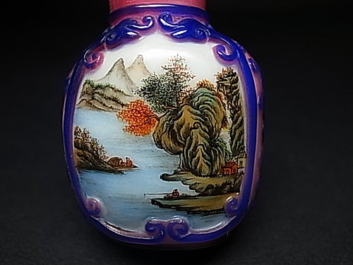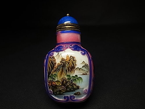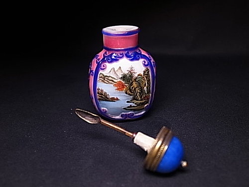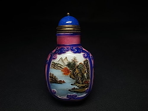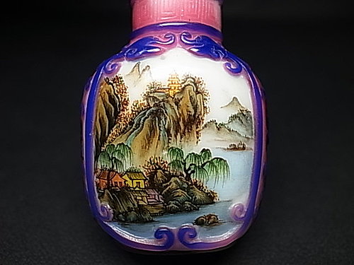 袖珍型鼻煙壺 ~ 套色料胎粉彩山水圖鼻煙壺