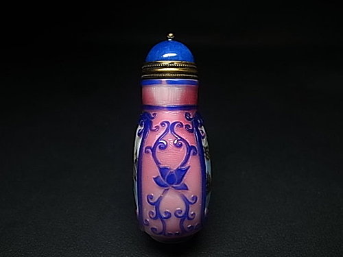 其技術難度較高,既要掌握好溫度又要不停的旋轉吹氣,掌握恰當,才能使玻璃器成型,晶瑩完美。玻璃鼻煙壺以質地區分可分為透明玻璃 ~ " 亮玻璃 " ;半透明玻璃 ~ " 珍珠泡地 " 玻璃;以及不透明的 " 涅玻璃 " 三大類。