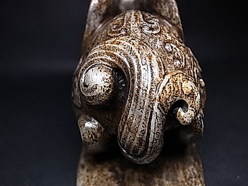 神獸目光炯炯有神,張口露齒舌尖微露