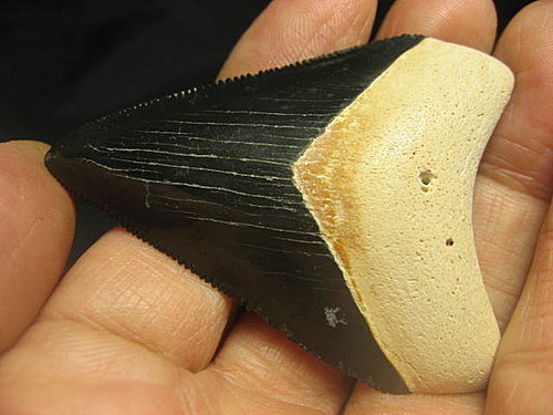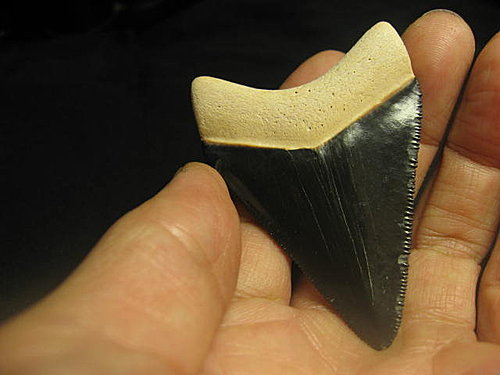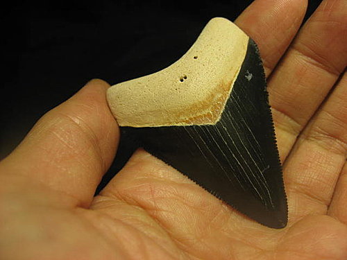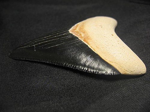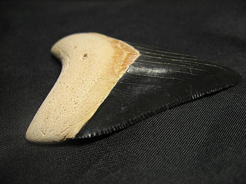 也是美國佛羅里達州骨谷磷酸鹽礦區的巨齒鯊魚牙標本,尺寸 : 2 3/8 x 1 3/4"