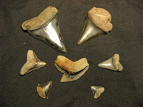 牙根沒清理的大白鯊下顎牙出土於嘉義牛埔,其他均產自苗栗,請大家慢慢欣賞。