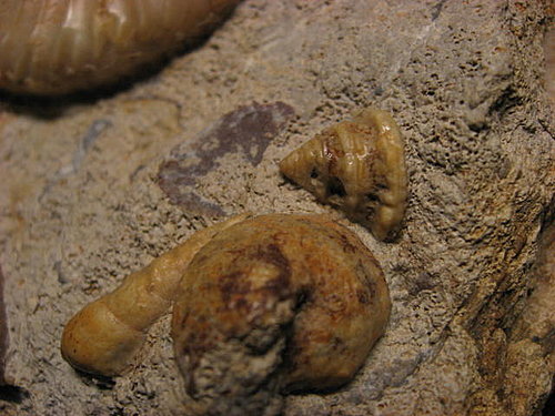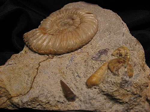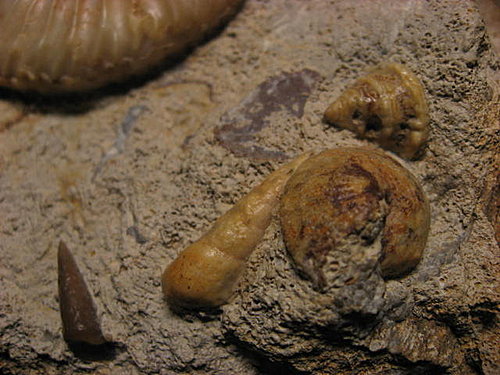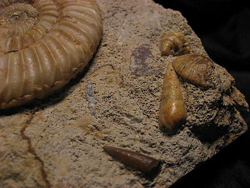 有菊石、小鸚鵡螺、、小翁絨螺、小捲螺、方解石化小箭石等等…