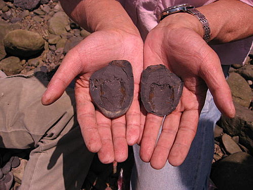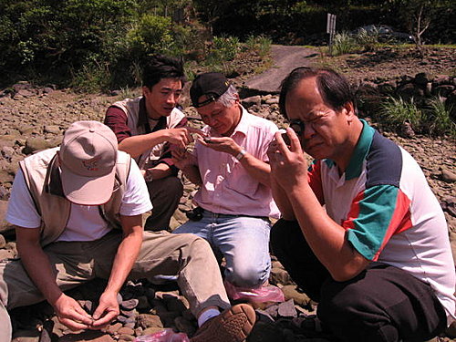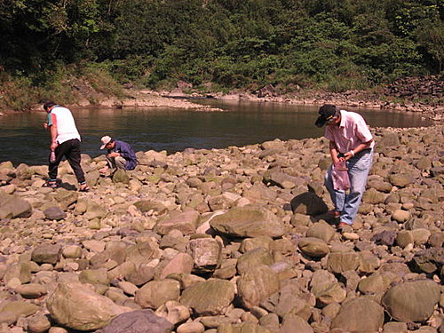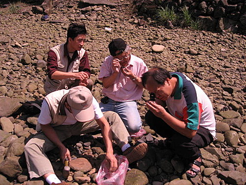 是經過溪流滾動洗練的產物,目標化石~黑石膽海膽、鐵丸石海膽、蛙蟹、靜蟹等等。