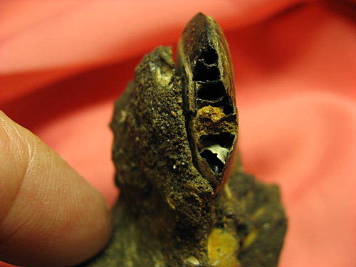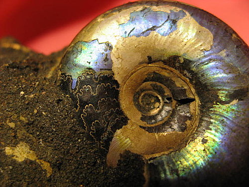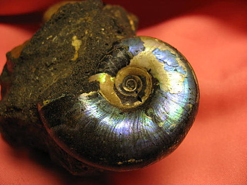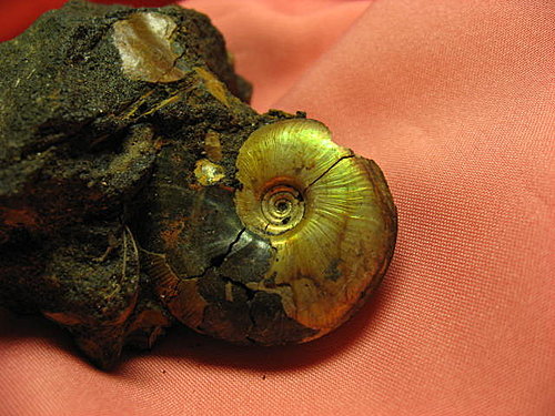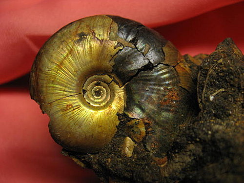 這塊黃鐵礦化彩斑菊石不同於大家看過的 " 宇宙菊石 "