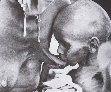 根據凱文·卡特自己憶述,他在灌木林外聽到一聲微弱的哭泣,一名瘦骨嶙峋、裸著身體小女孩,奄奄一息在貧瘠蒼涼的大地上向一公里外的食品發放中心爬行,出於記者的直覺,他蹲下來向女孩拍照。正當此時,一隻禿鷹落在小女孩身後,等待女孩的死亡,然後大快朵頤。