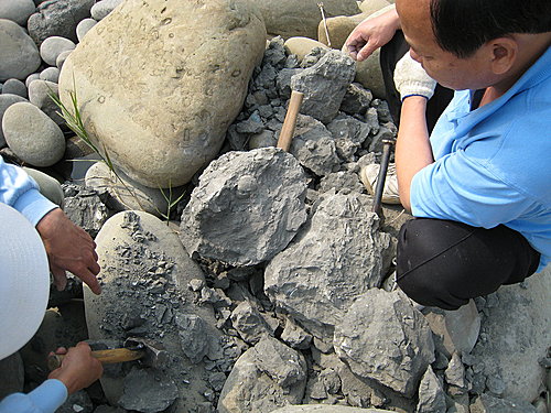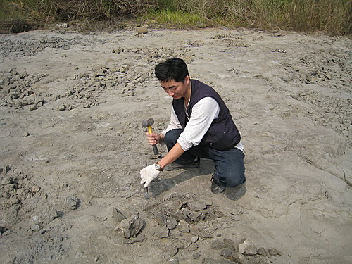 第一個點是玉豐橋下曾文溪河床, 六重溪層的化石採集 !